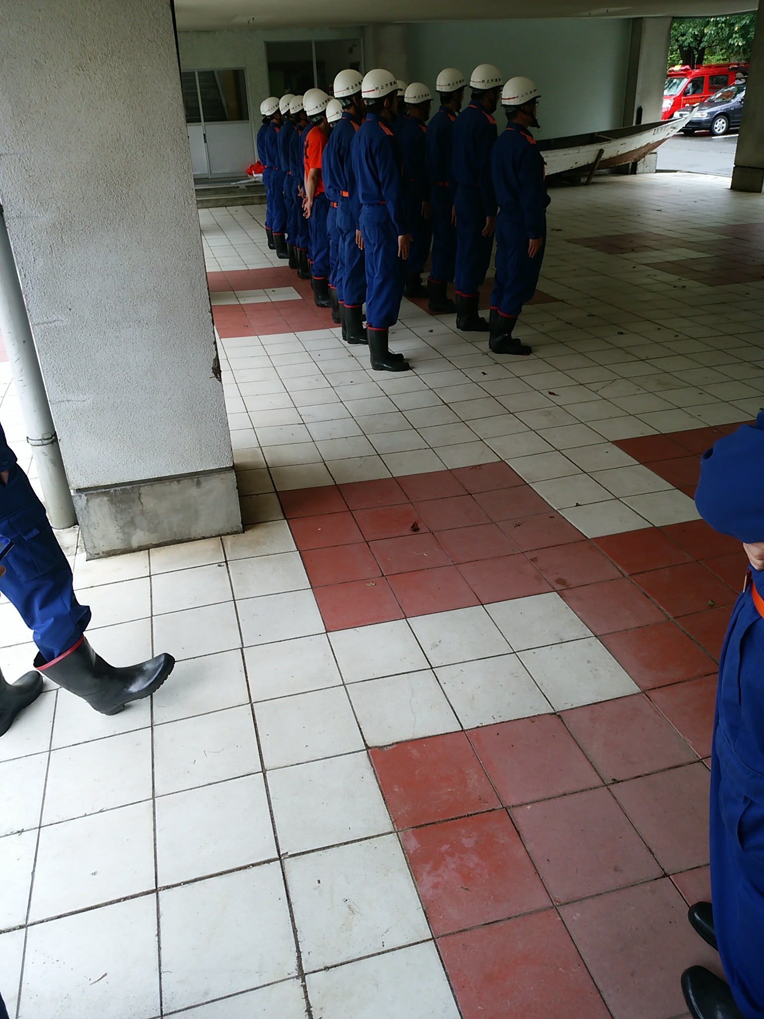 防災訓練2015年9月3日 日曜日、各避難場所にて集合、団員はその後運動公園集合でした。 雨模様だったため、はよ終わらんかな~なんて甘い考えでいたら、 さすが鬼軍曹、小学校へ移動して、姿勢服装の点検を小一時間ほどやるとの事。 参加された方々、お疲れっした。 by 4696 スタッフ日記
