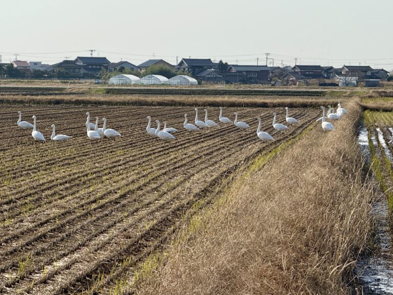 今年も初雪が降り、白鳥が大池に飛来しました。